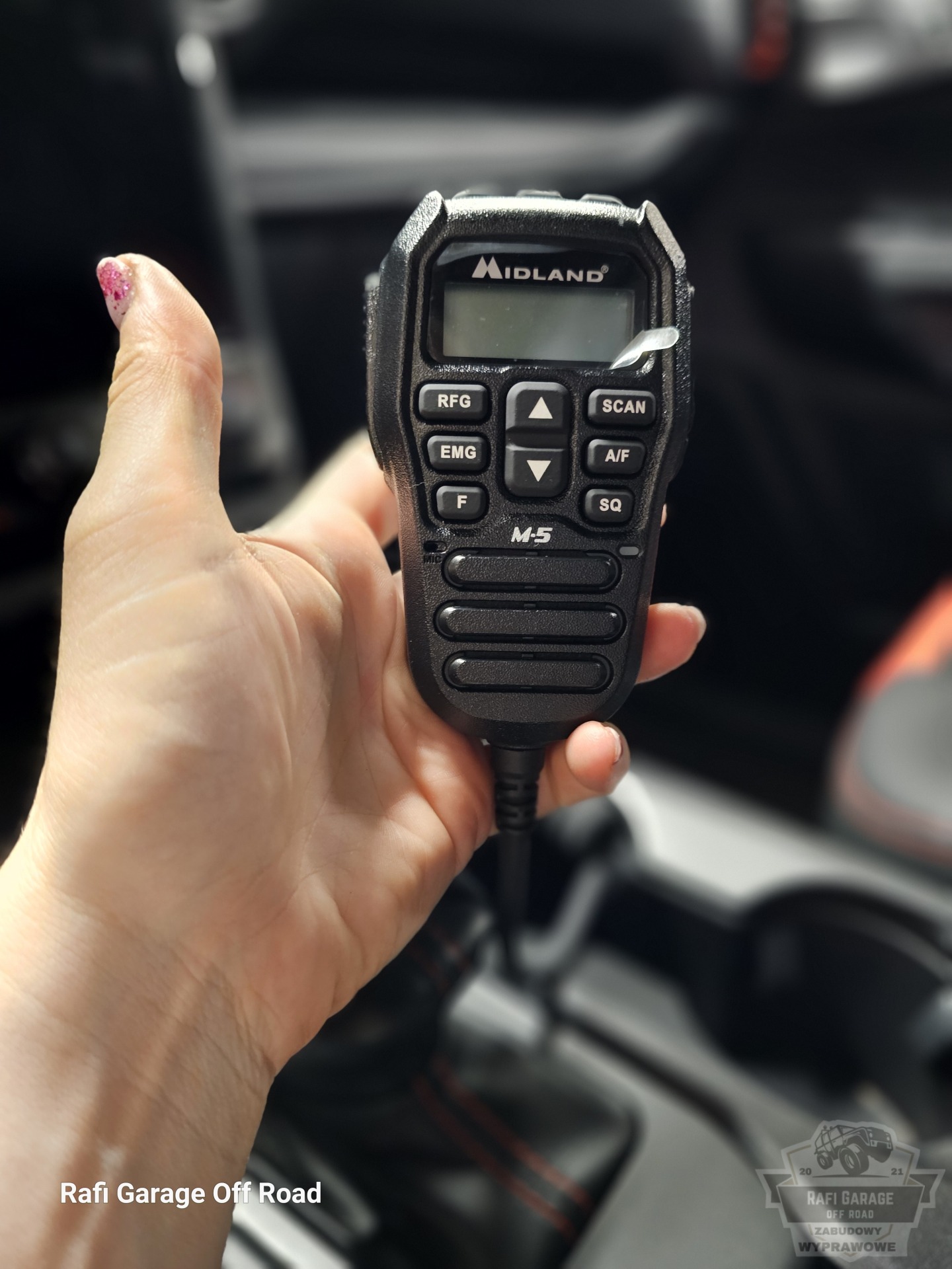 - Montaż radia CB Midland wraz z anteną. Przewód antenowy poprowadzony pod maskę