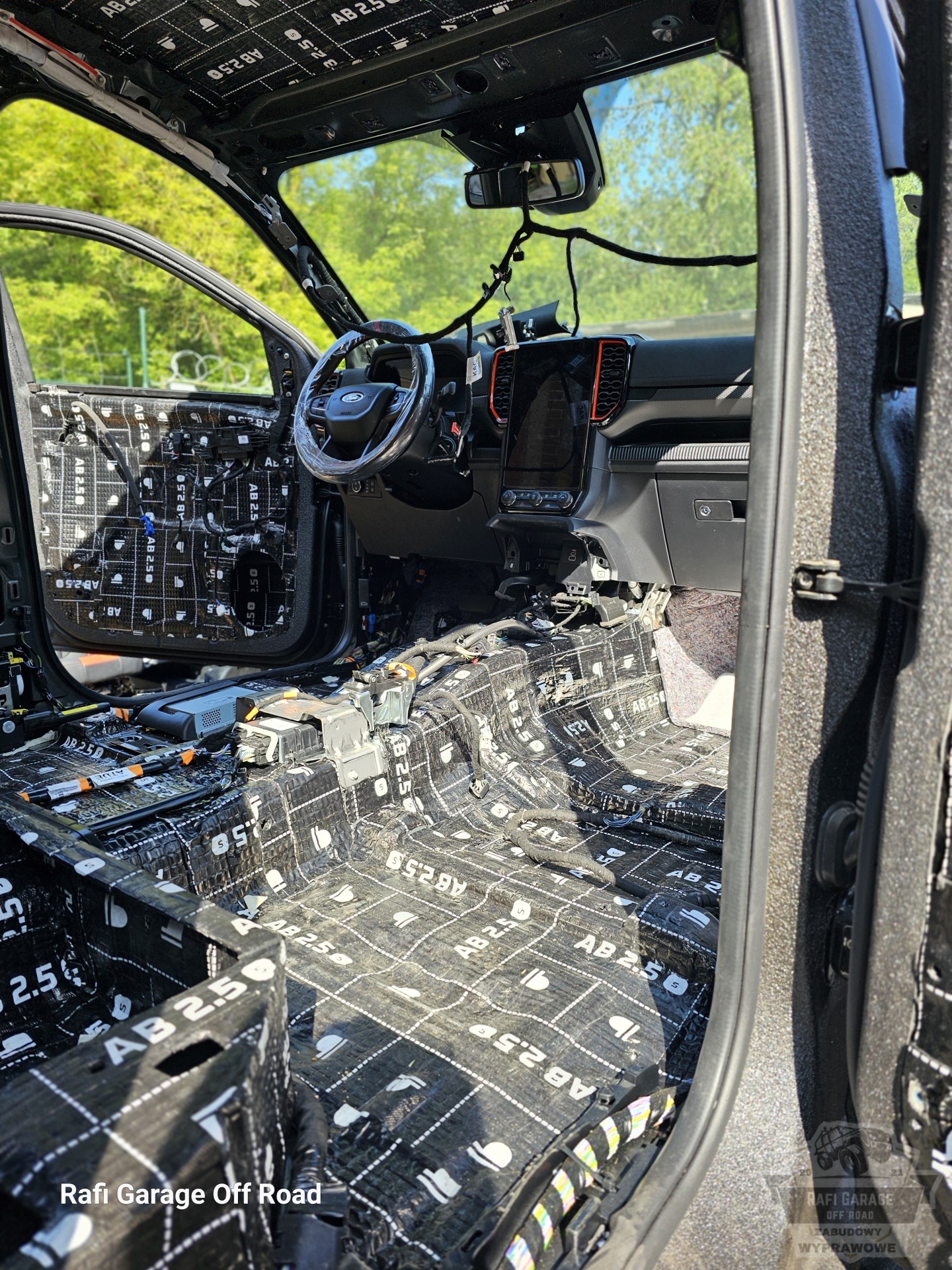 - Wygłuszenie podsufitki oraz całej części pasażerskiej matą alubutylową. Wnętrze rozebrane w całości, po wykonaniu prac złożone do stanu fabrycznego. Pełna galeria pracy TUTAJ