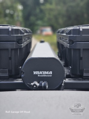 - Montaż prysznica Yakima Road Shower wraz z dodatkową wylewką, kolankiem z zaworem oraz pełnym montażem na pojeździe