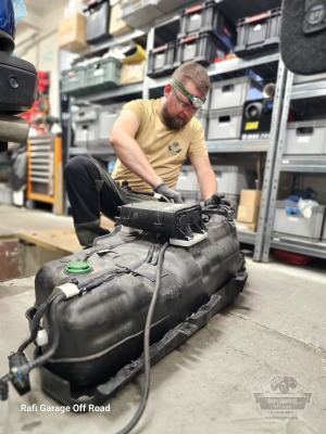 - Montaż powiększonego dedykowanego zbiornika paliwa o pojemności 140 l wraz z dopasowaniem i osadzeniem w pojeździe. Usługa bez utraty gwarancji leasingowej!