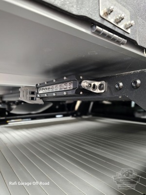 - Montaż dwóch lamp roboczych LED firmy Detoxled w tylnej części konstrukcji na pace. Wykonanie instalacji i podłączenie do panelu sterowania umieszczonego pod podsufitką