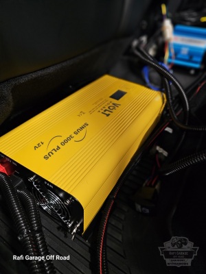 - Montaż przetwornicy Volt Sinus Plus 3000 za tylną kanapą. Wykonanie przyłącza zasilania, zabezpieczenie antyprzepięciowe pod maską oraz hebel odcinający