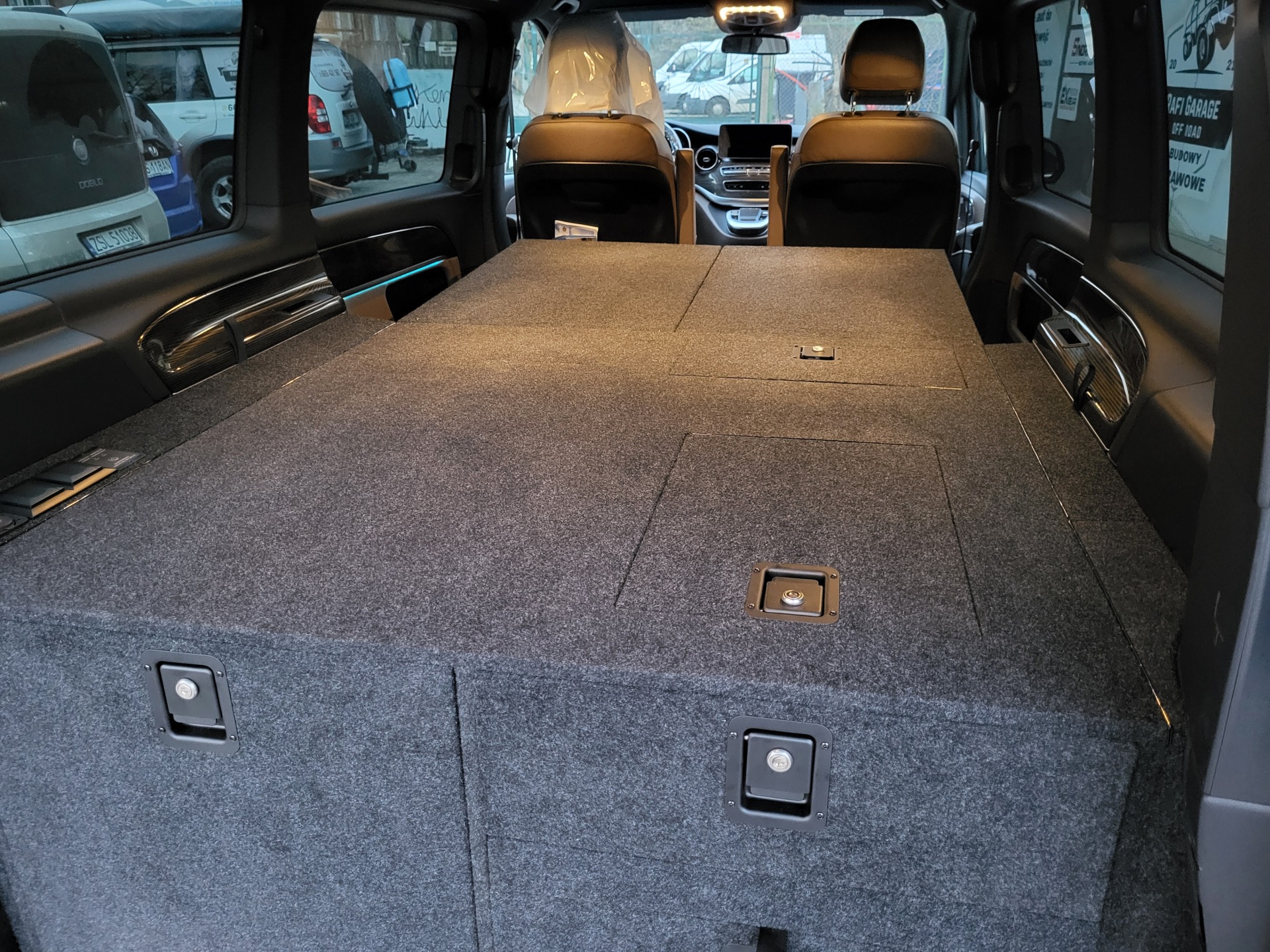 Zabudowa do Mercedesa V Klasy, która została wykonana w oparciu o dostarczoną przez klienta dokumentację techniczną. Przesłana dokumentacja posiadała wszelkie wytyczne związane z wykonaniem realizacji, rozmieszczeniem szuflad, rozmieszczeniem gniazd, zaplanowanymi rewizjami oraz funkcją spania. Bardzo przemyślany i funkcjonalny projekt, który mieliśmy przyjemność wykonać.