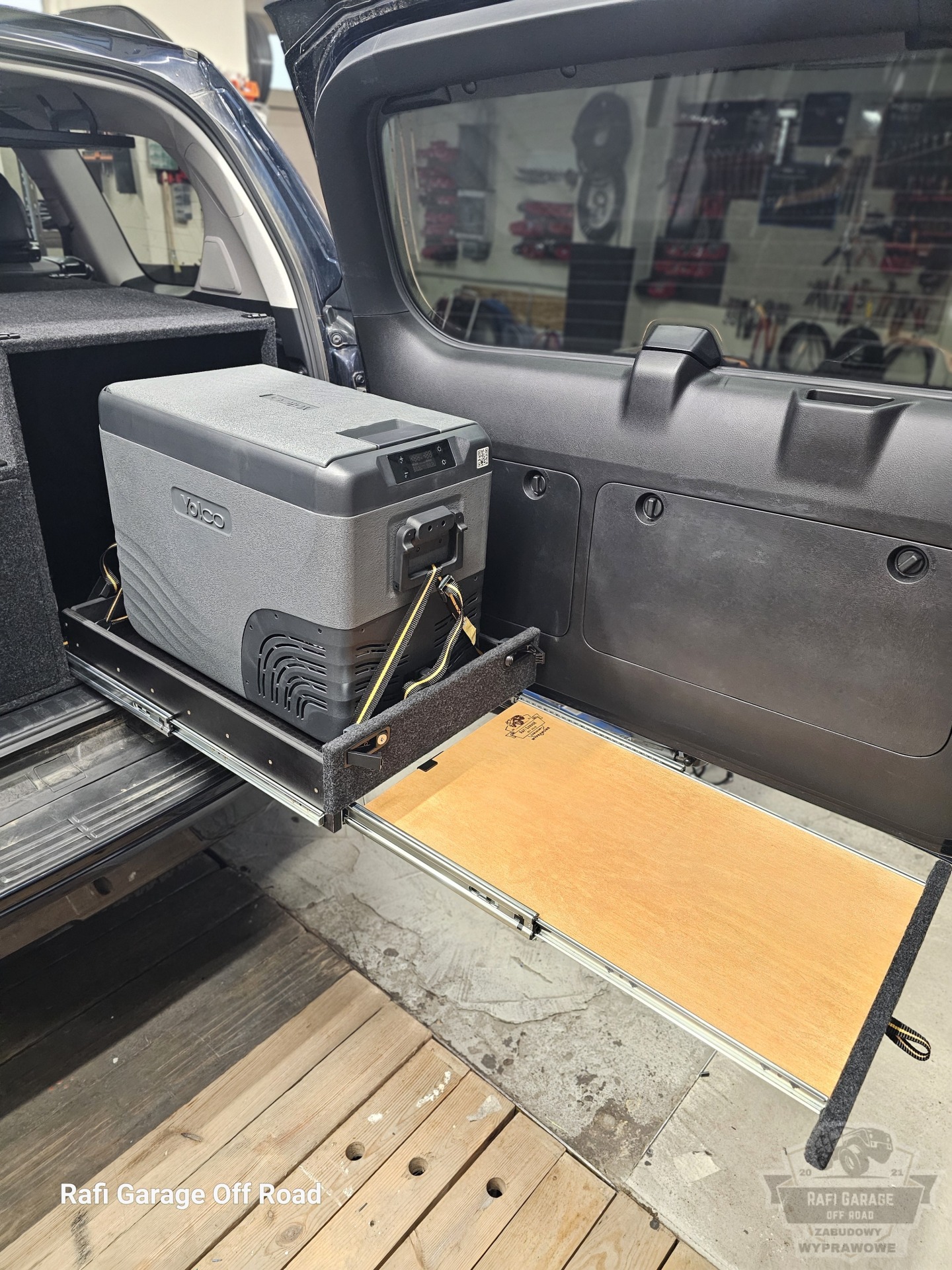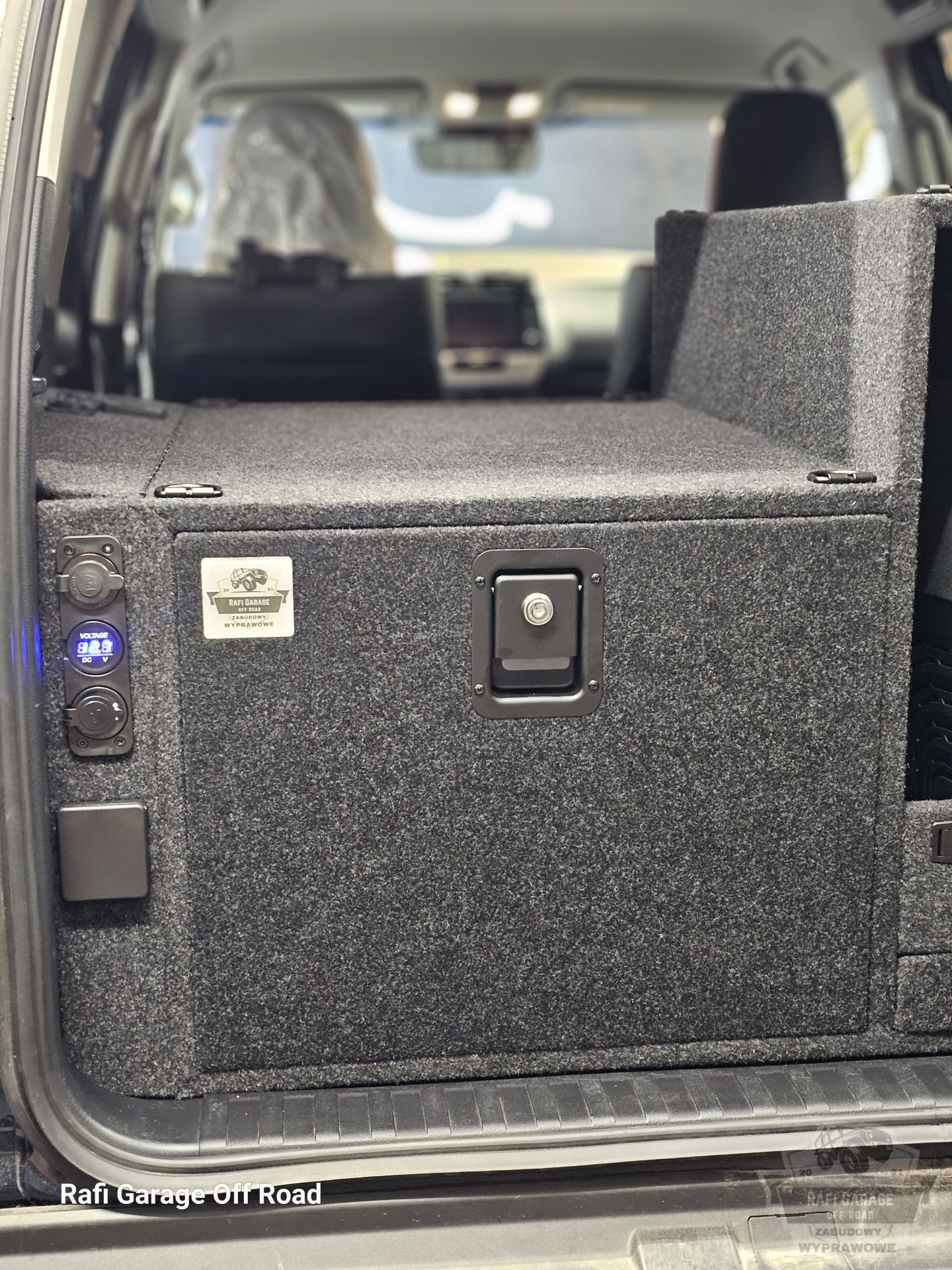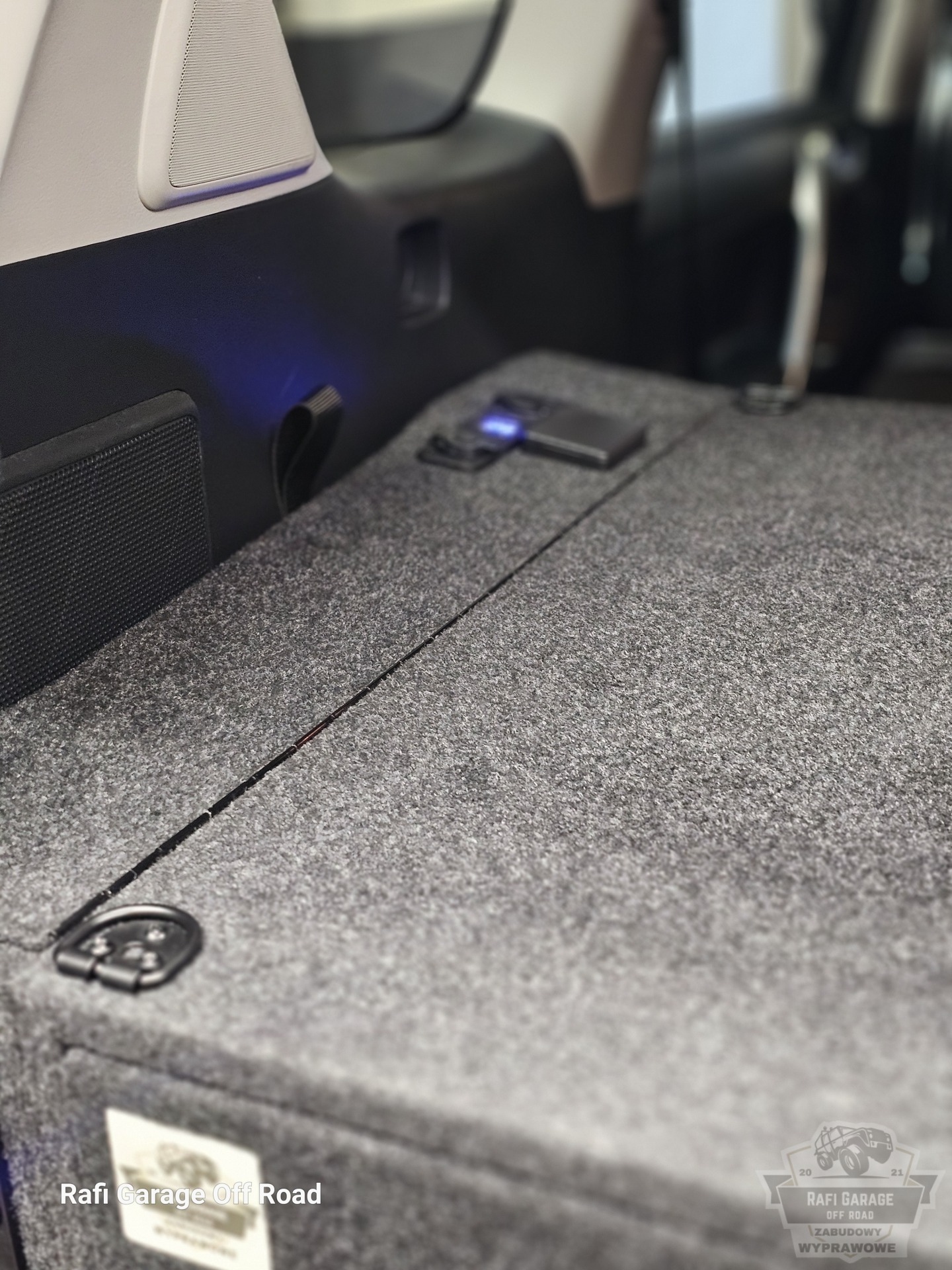 Nie każda zabudowa wyprawowa musi mieć funkcję spania, aby realnie zwiększyć możliwości auta w terenie. Ten projekt powstał z myślą o overlandingu, gdzie kluczowa jest logistyka, dostęp do sprzętu i niezależność energetyczna. Efekt to dopracowana, tapicerowana na grafitowo zabudowa, która porządkuje przestrzeń bagażnika i przygotowuje samochód na rodzinne wypady.