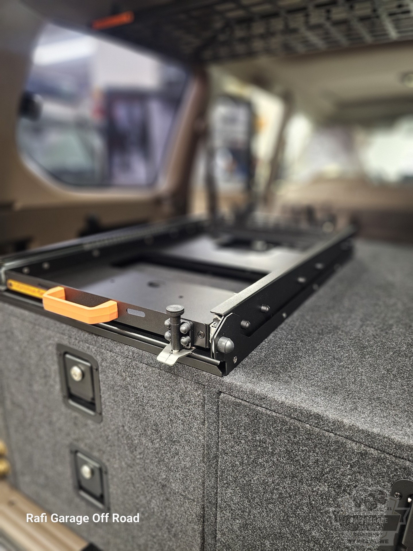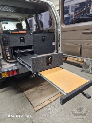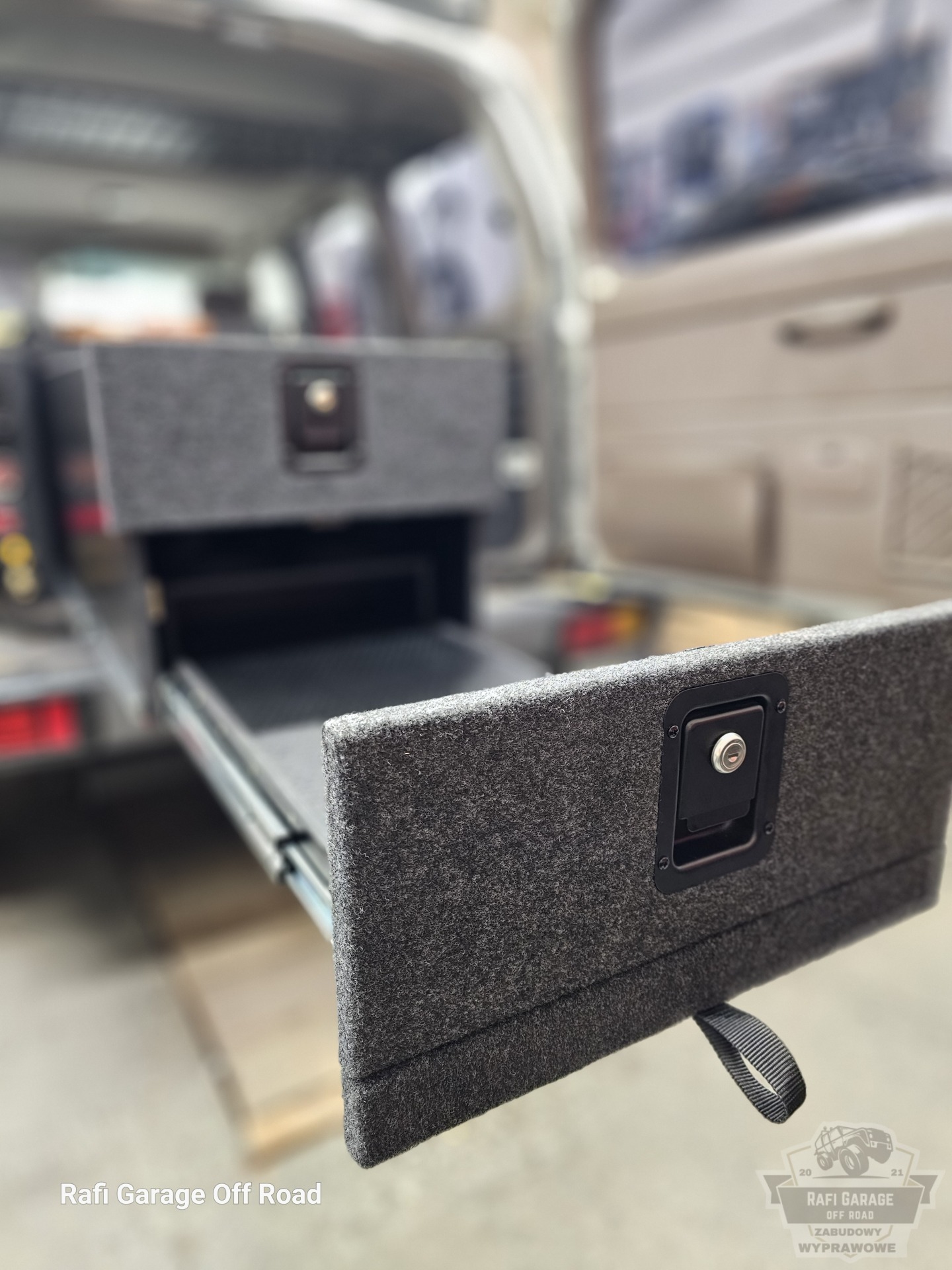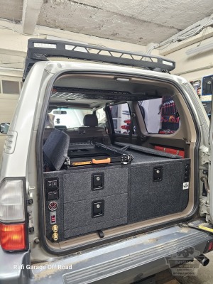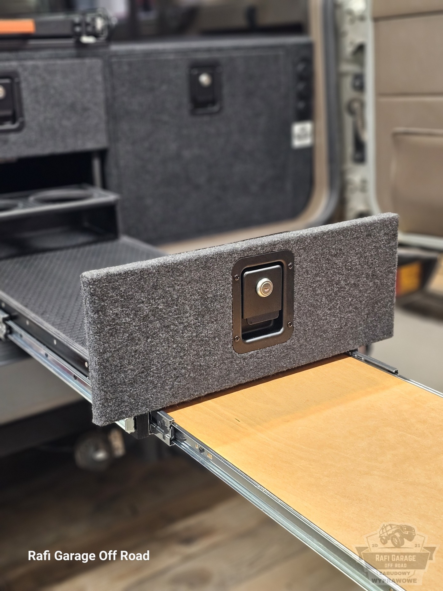 Projekt bazuje na sprawdzonym rozwiązaniu znanym z realizacji dla Toyota Land Cruiser 150, jednak został dopasowany do konkretnego pojazdu i potrzeb klienta. Zabudowa ma wysokość 44 cm i oferuje ergonomiczny dostęp do całej przestrzeni ładunkowej.