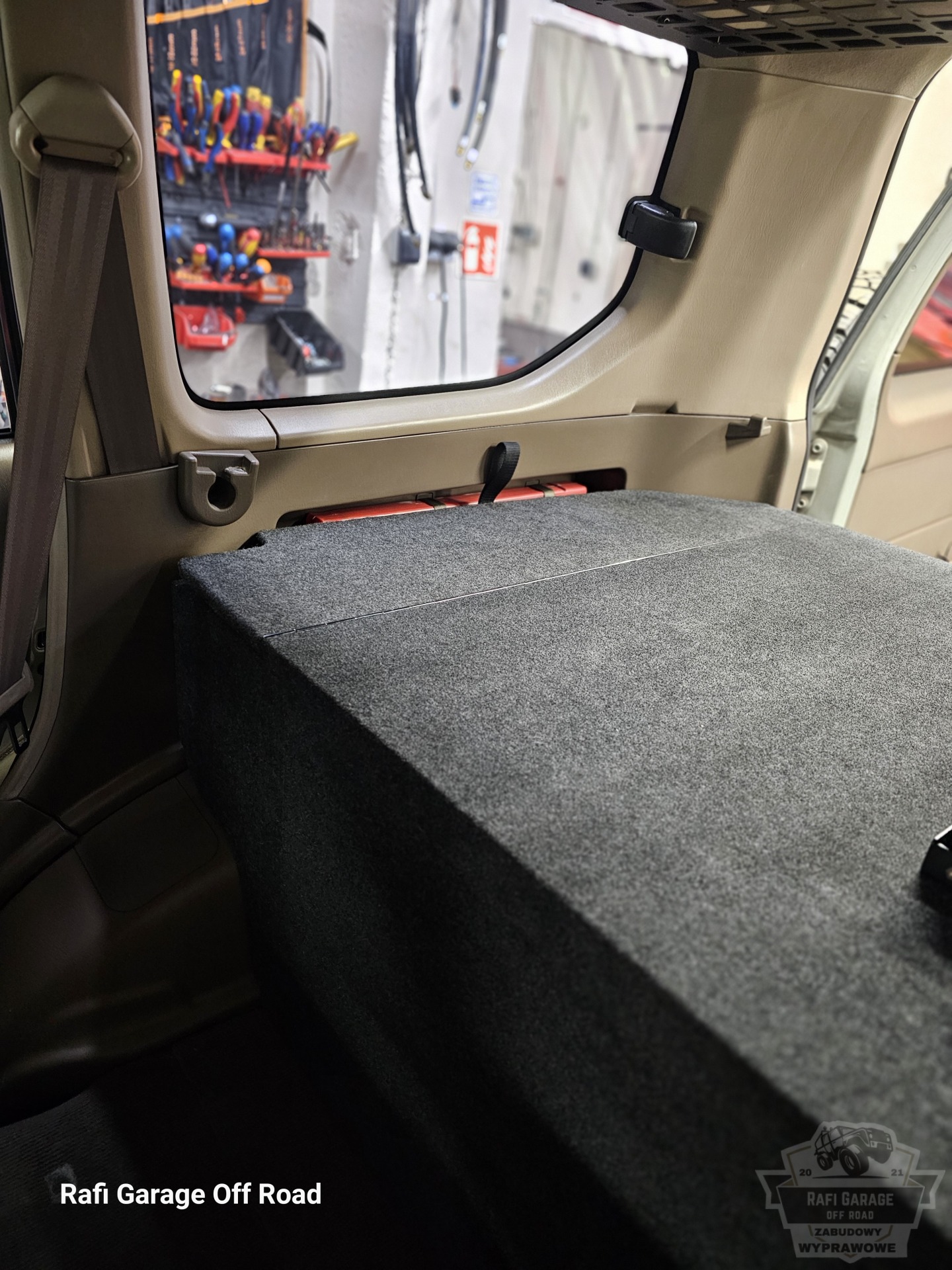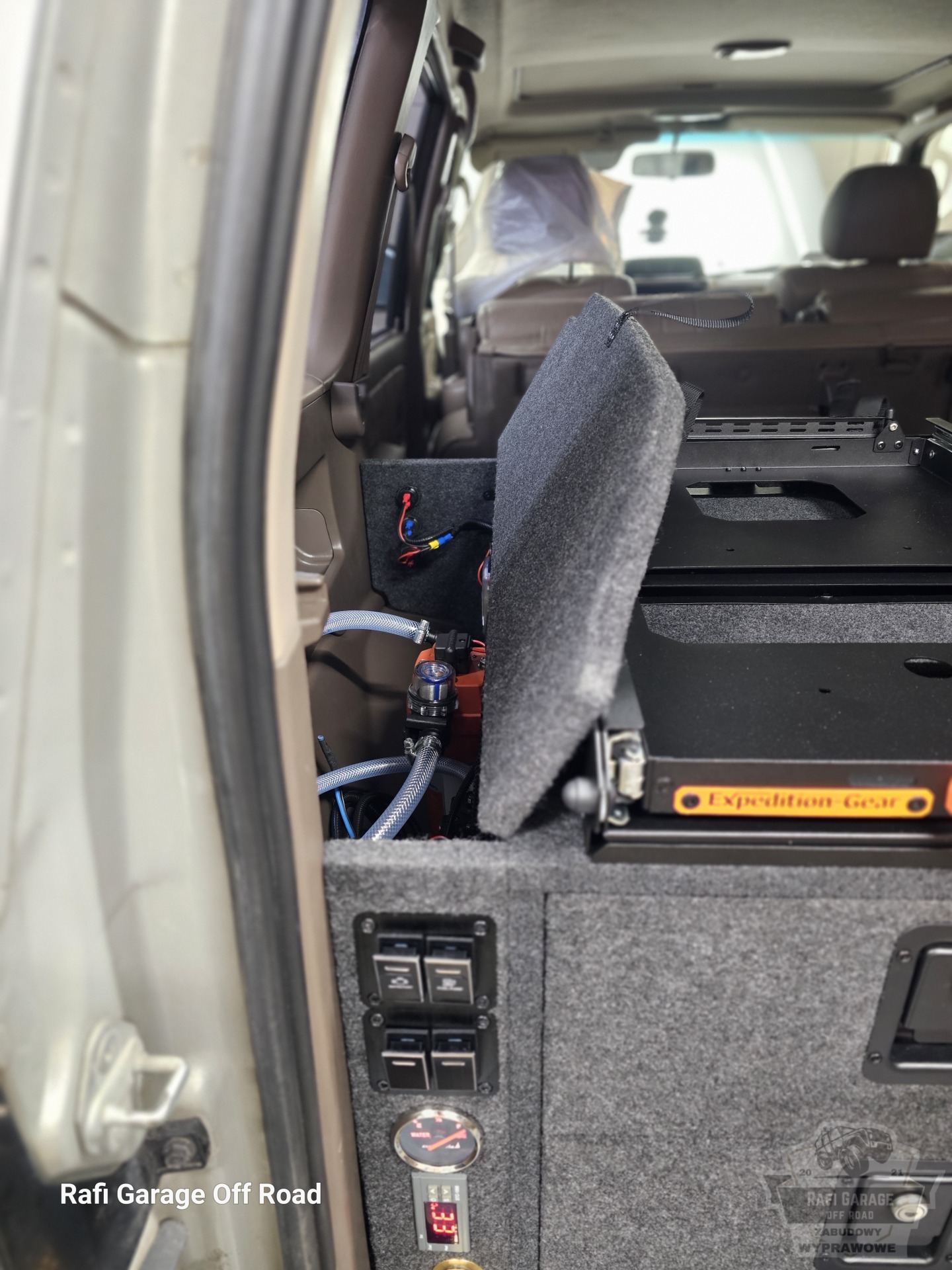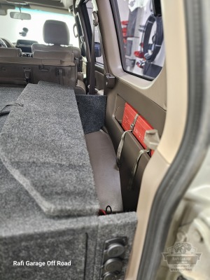 Zabudowa wyprawowa została zaprojektowana z myślą o użytkownikach, którzy stawiają na maksymalną funkcjonalność w podróżach off-road i overlanding, bez potrzeby korzystania z funkcji spania. Całość wykonano w wersji tapicerowanej, co poprawia estetykę oraz komfort użytkowania przestrzeni bagażowej.