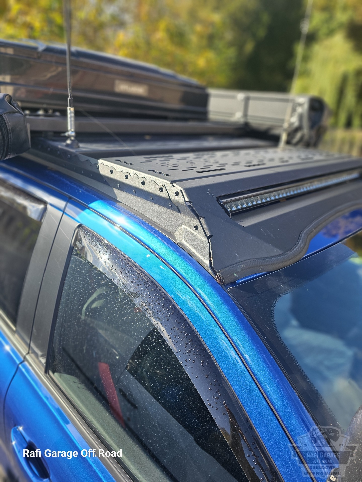 - Zamontowane na platformie pod bagażnik dachowy modułowy o długości 2m z dorabianymi mocowania do hard topu