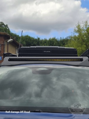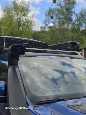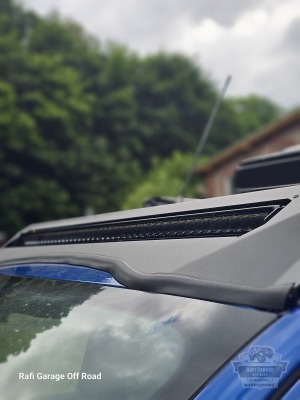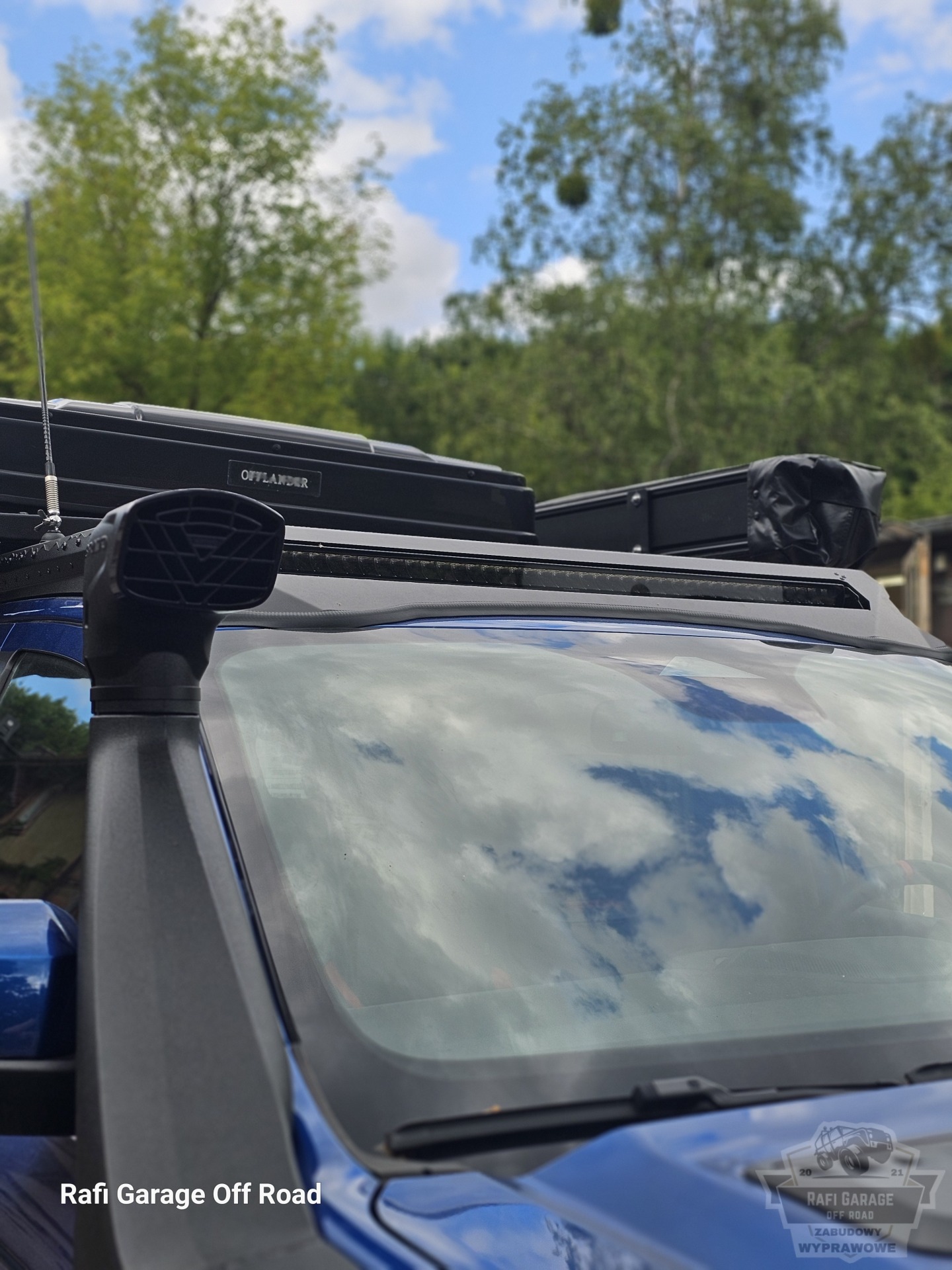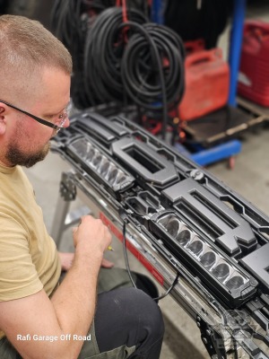 - Oświetlenie wyprawowe zewnętrzne firmy Detoxled na Hard Top’ie (6x 8” – 2 szt. lewa, 2szt prawa, 2szt tył) wraz z instalacją i podpięciem pod fabryczny panel w podsufitce