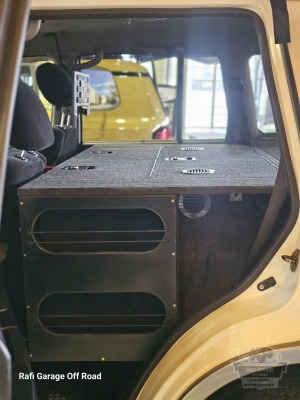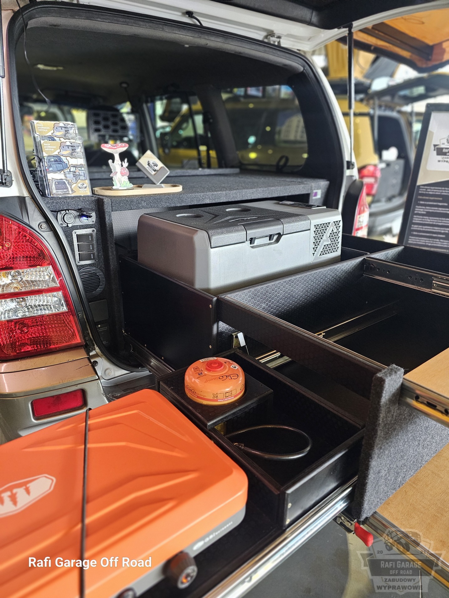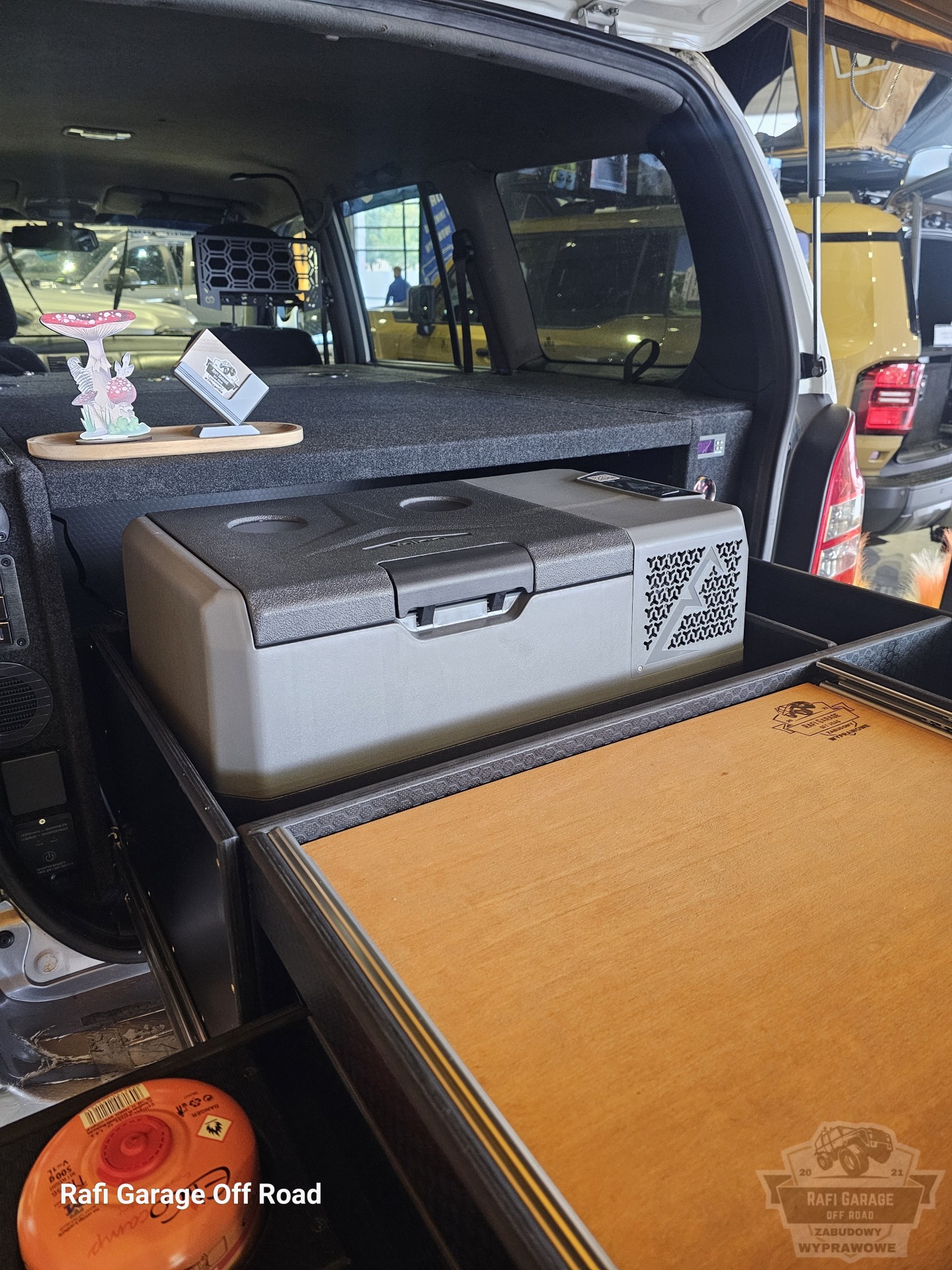 W głębi jest wydzielone miejsce pod lodówkę turystyczną firmy YolCo BCX30 (zmieszczą się także butelki na wodę) wraz z dodatkową przestrzenią do przechowywania (garnki, talerze itp.)