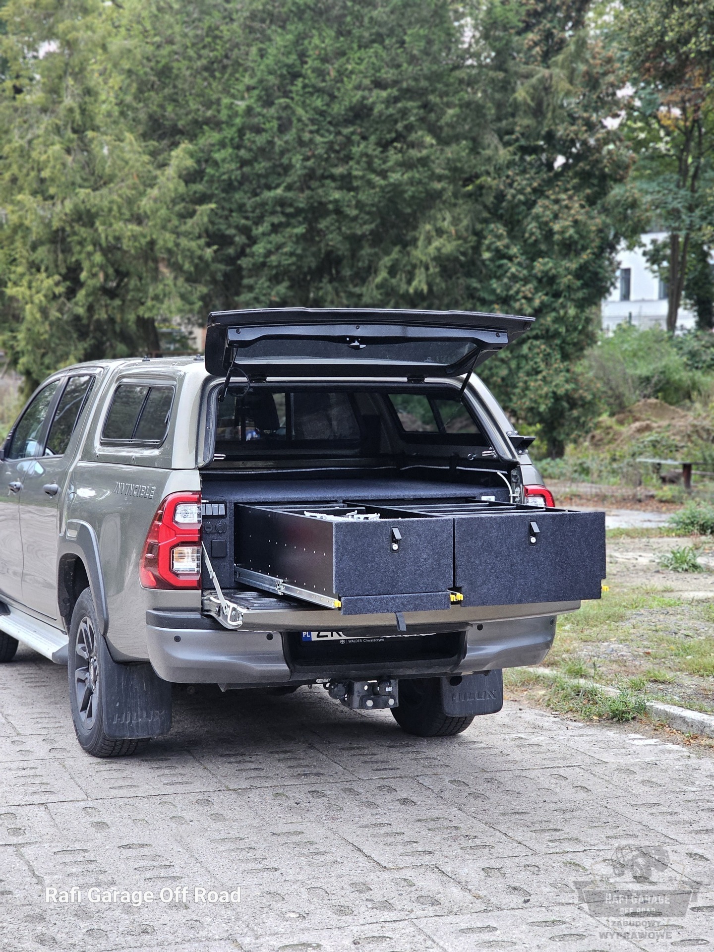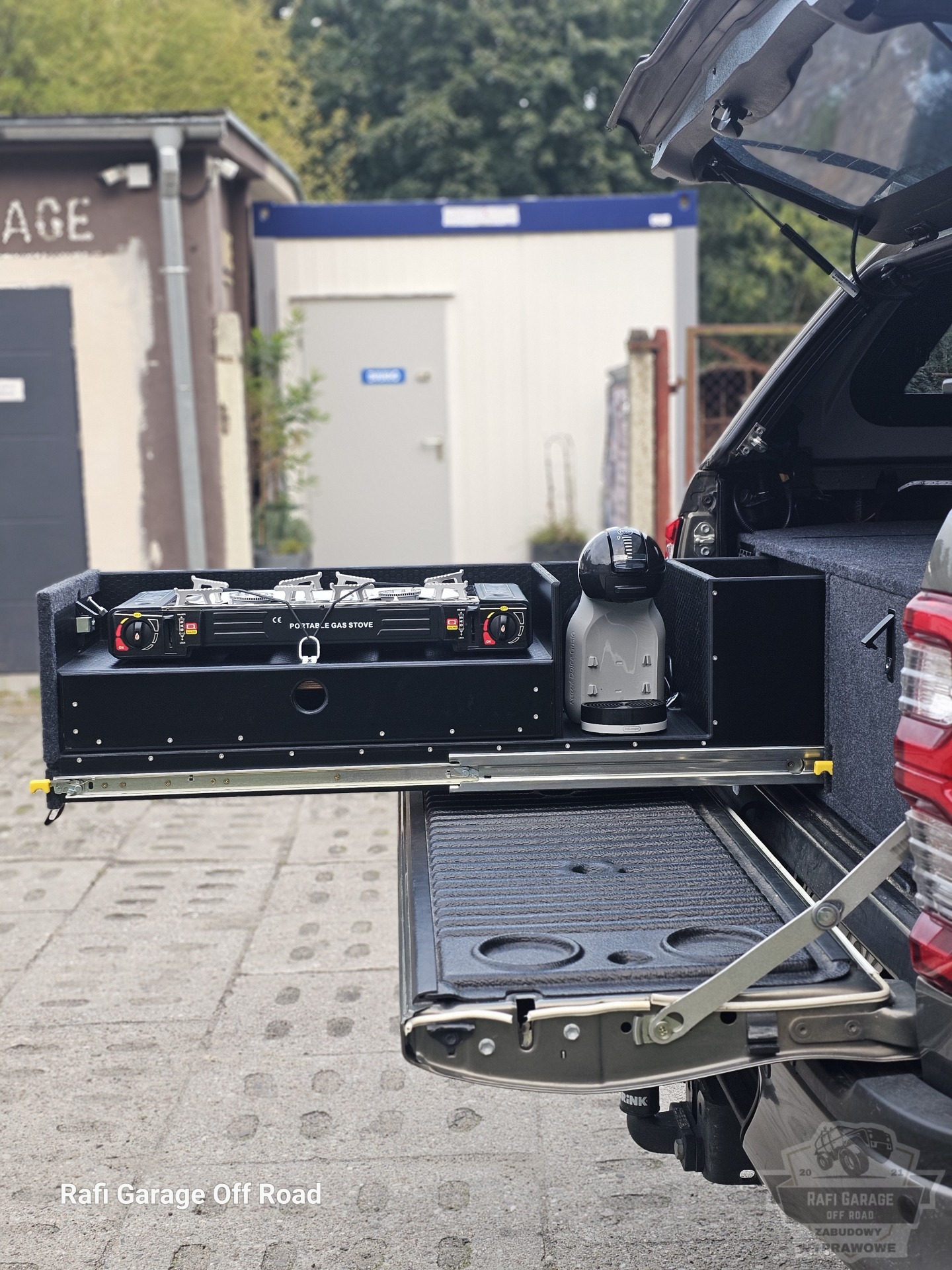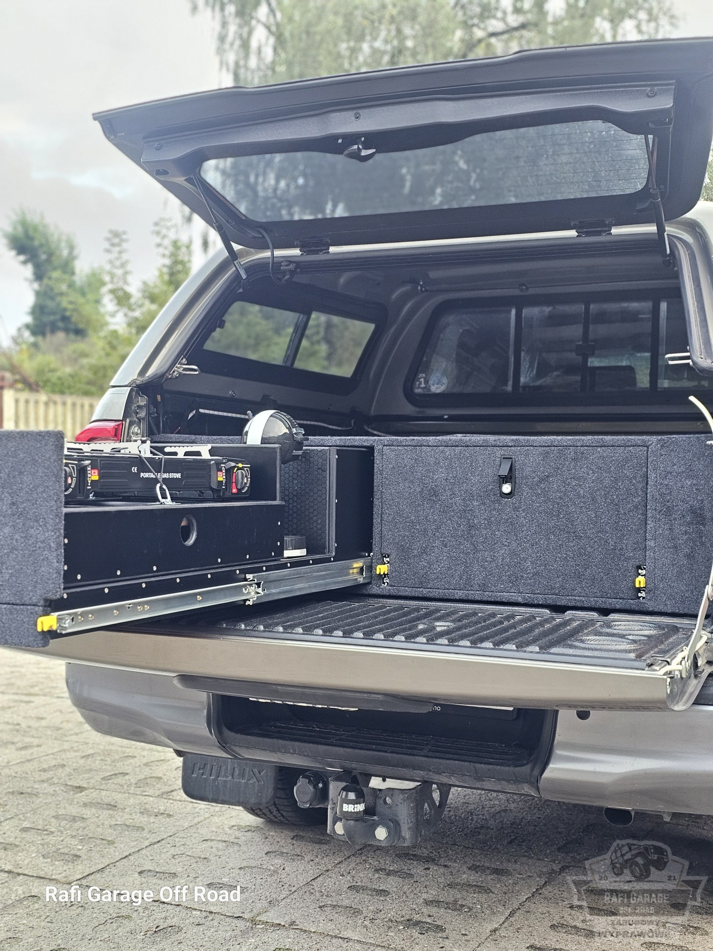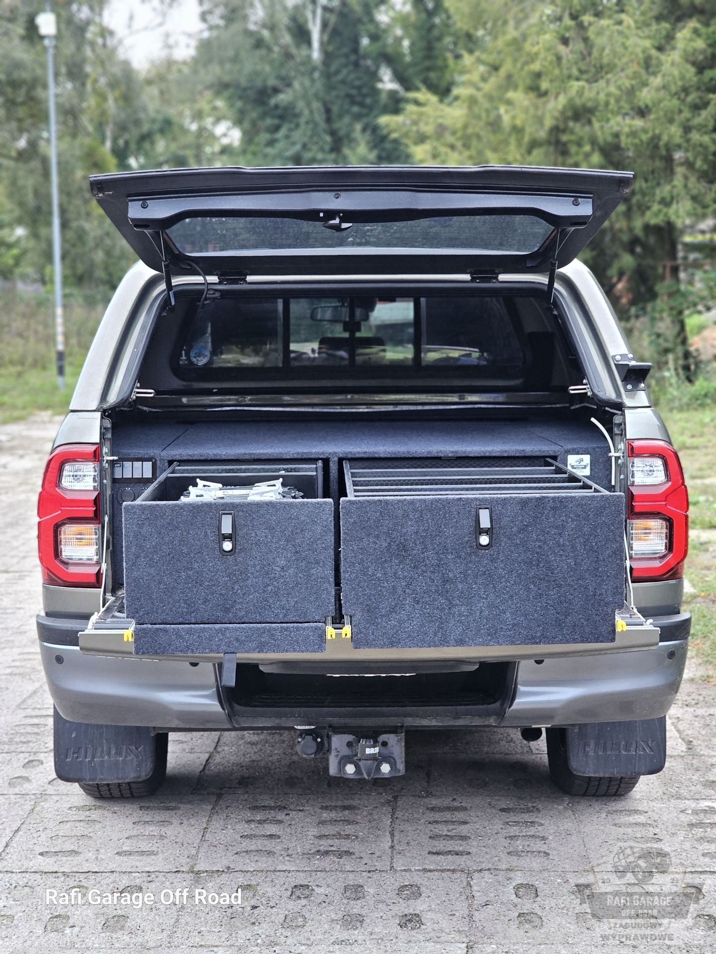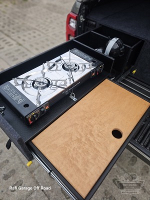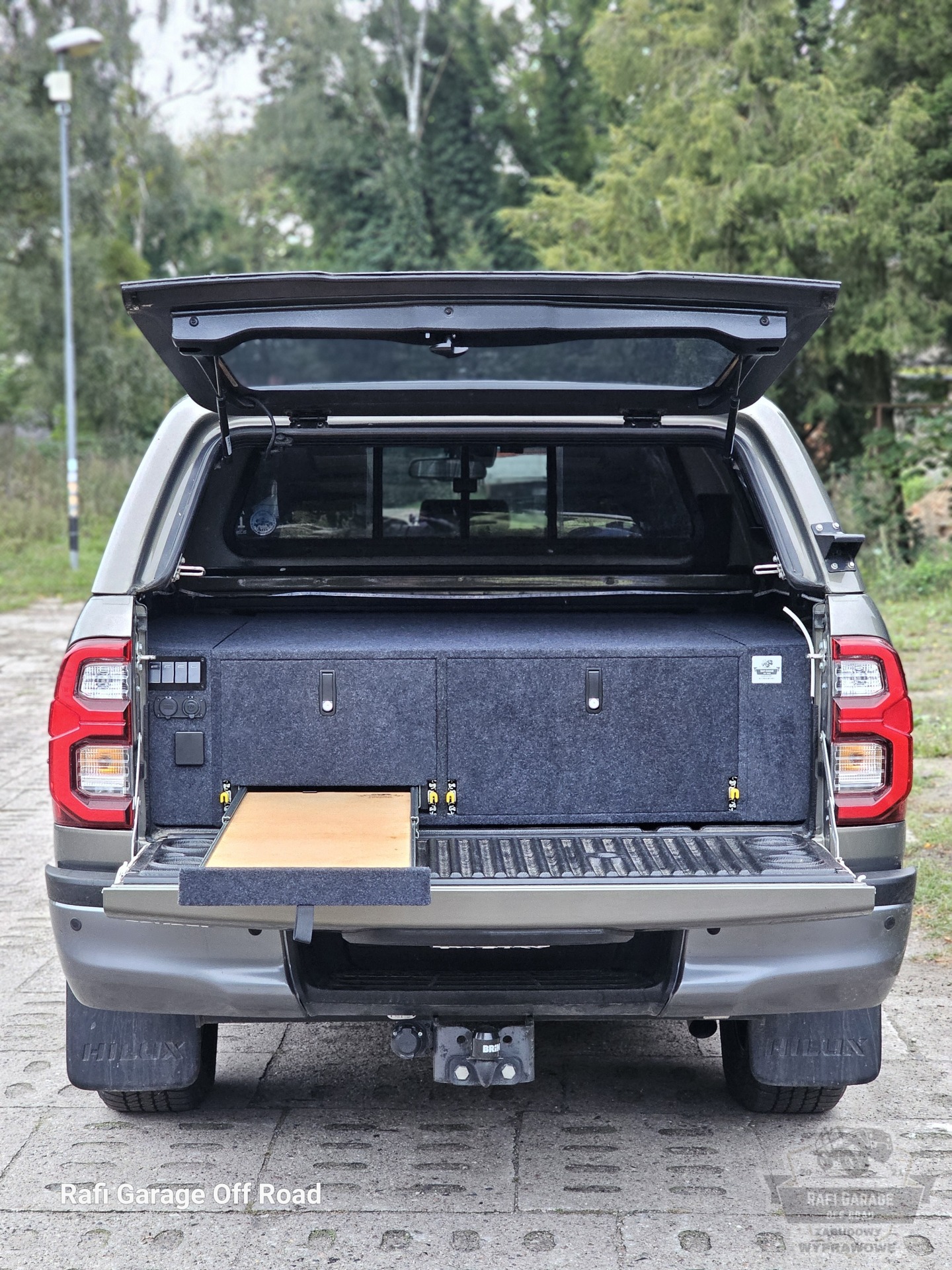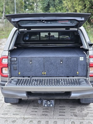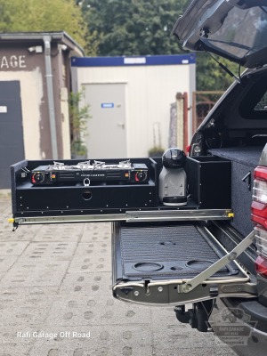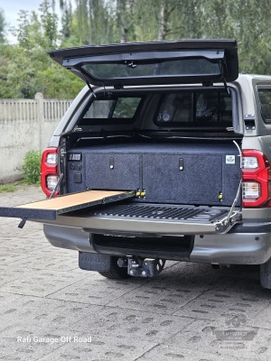 Toyota Hilux – zabudowa paki z modułem kuchennym i szufladami 250 kg
