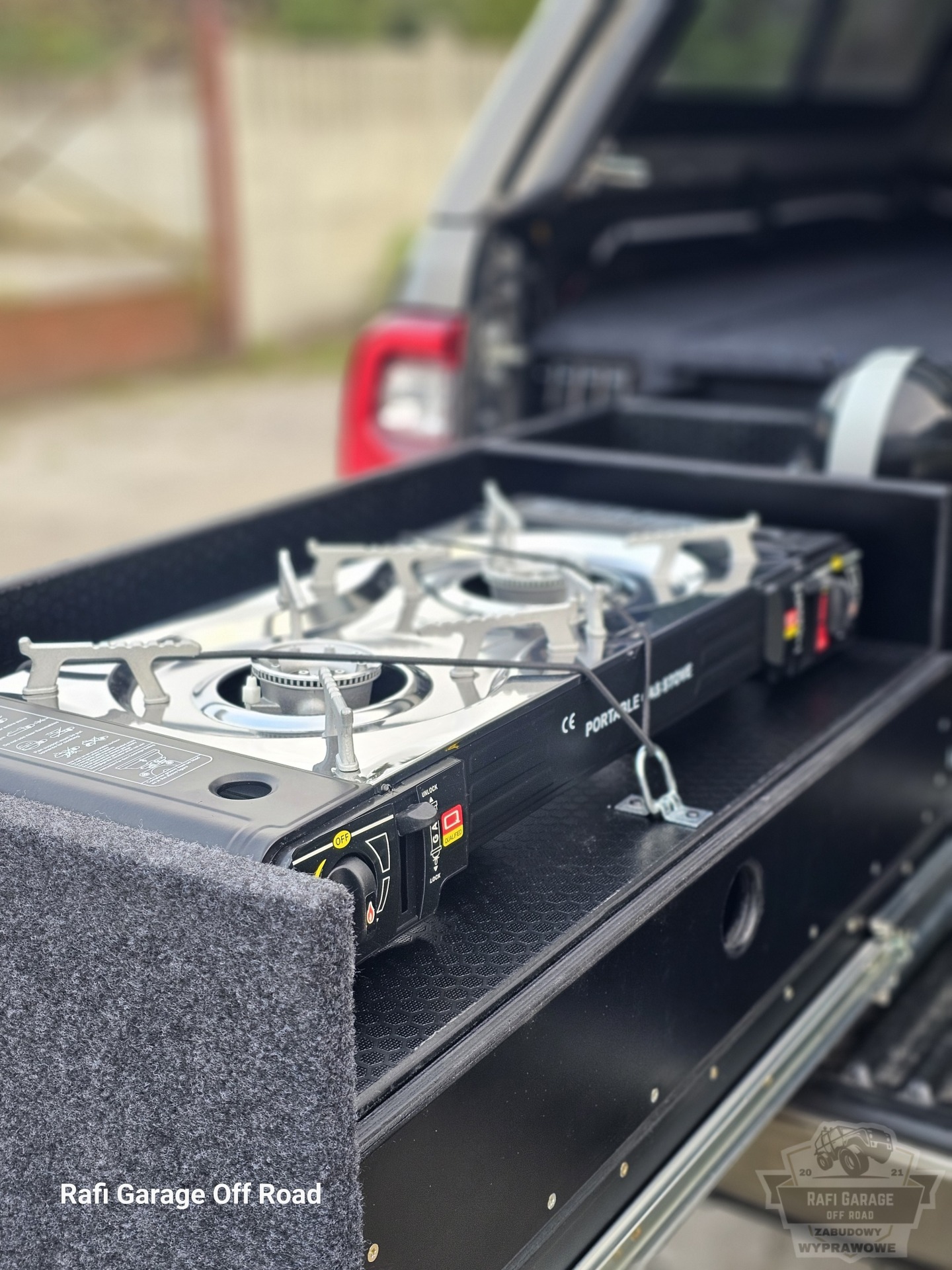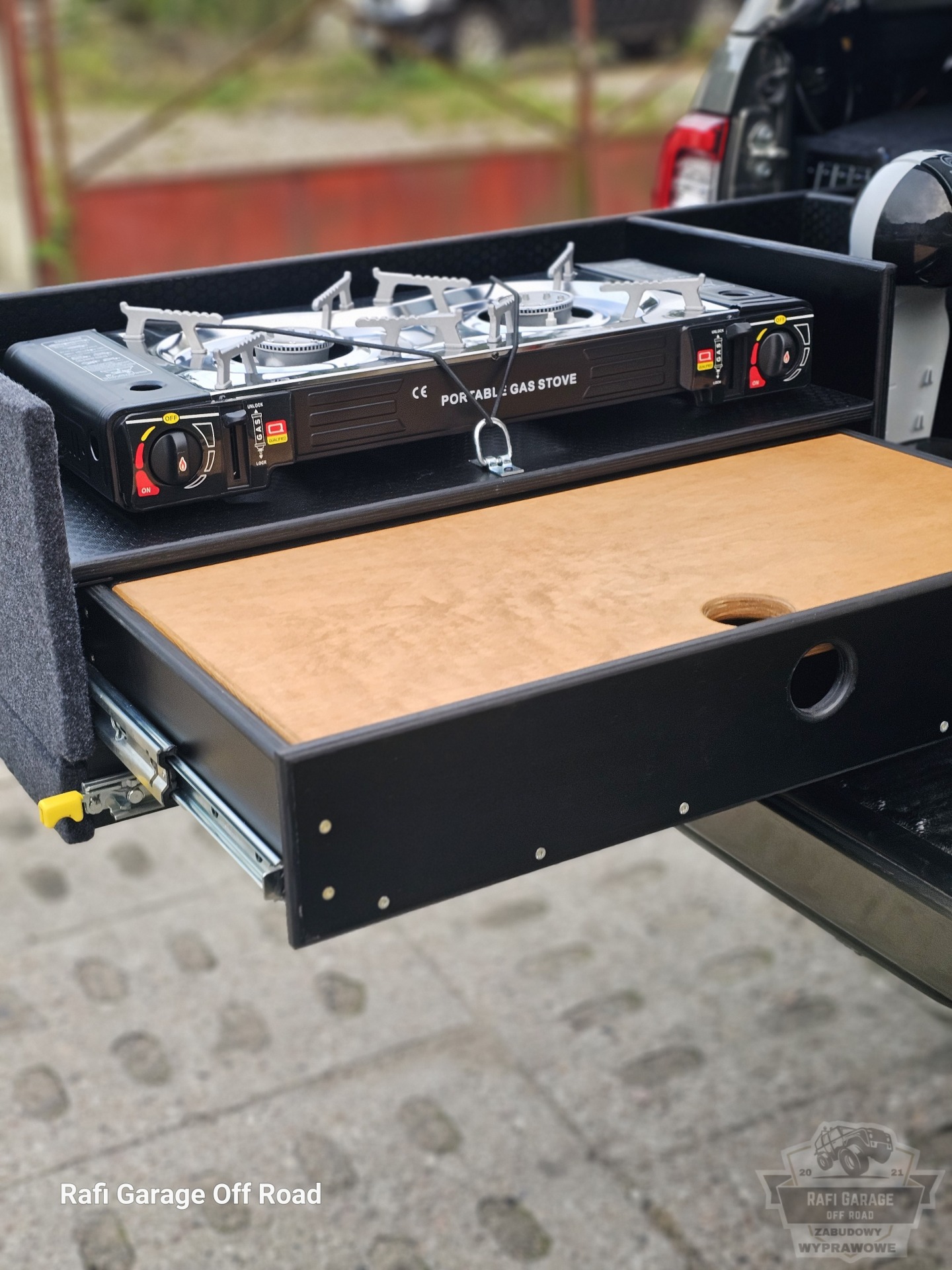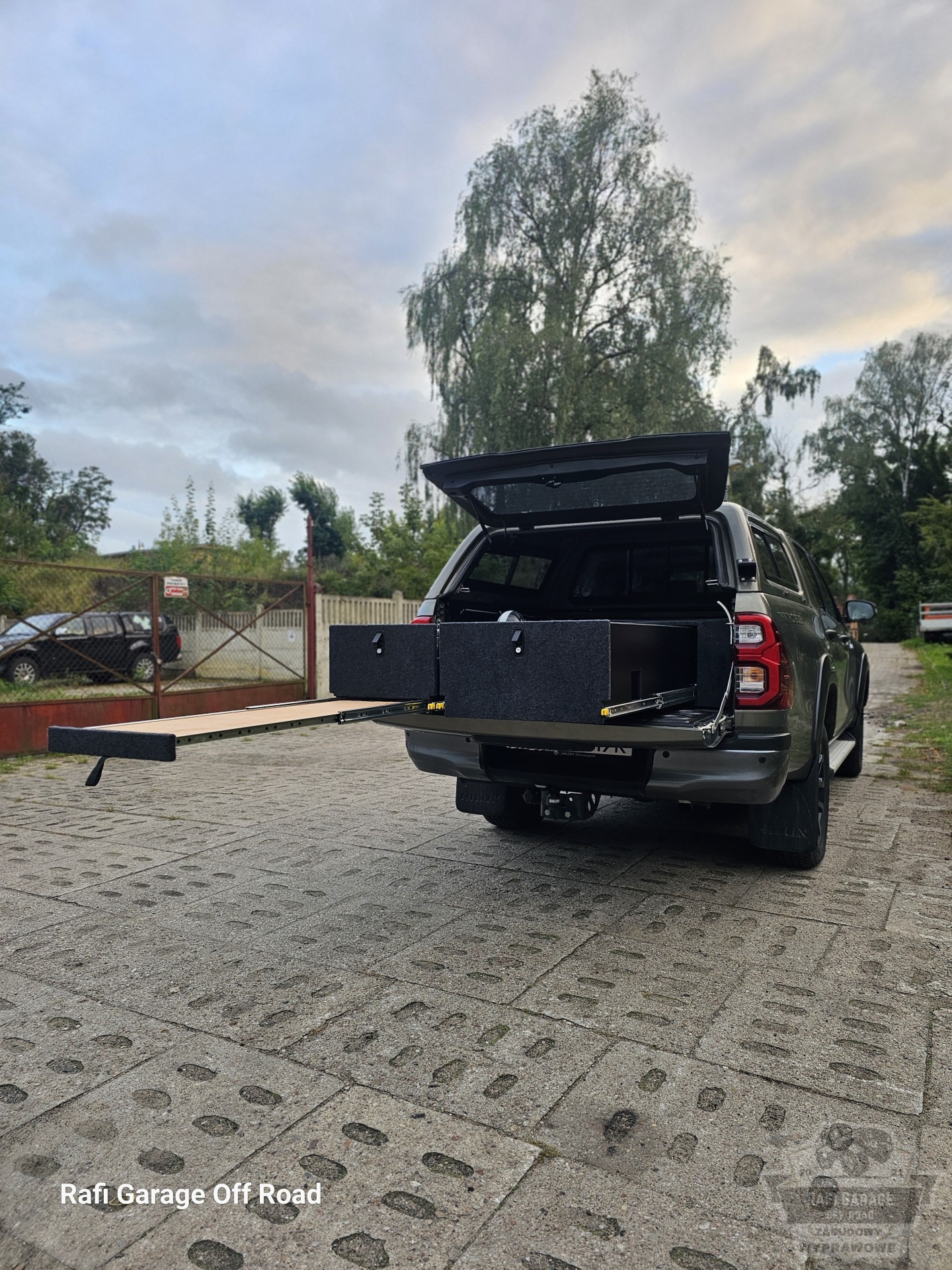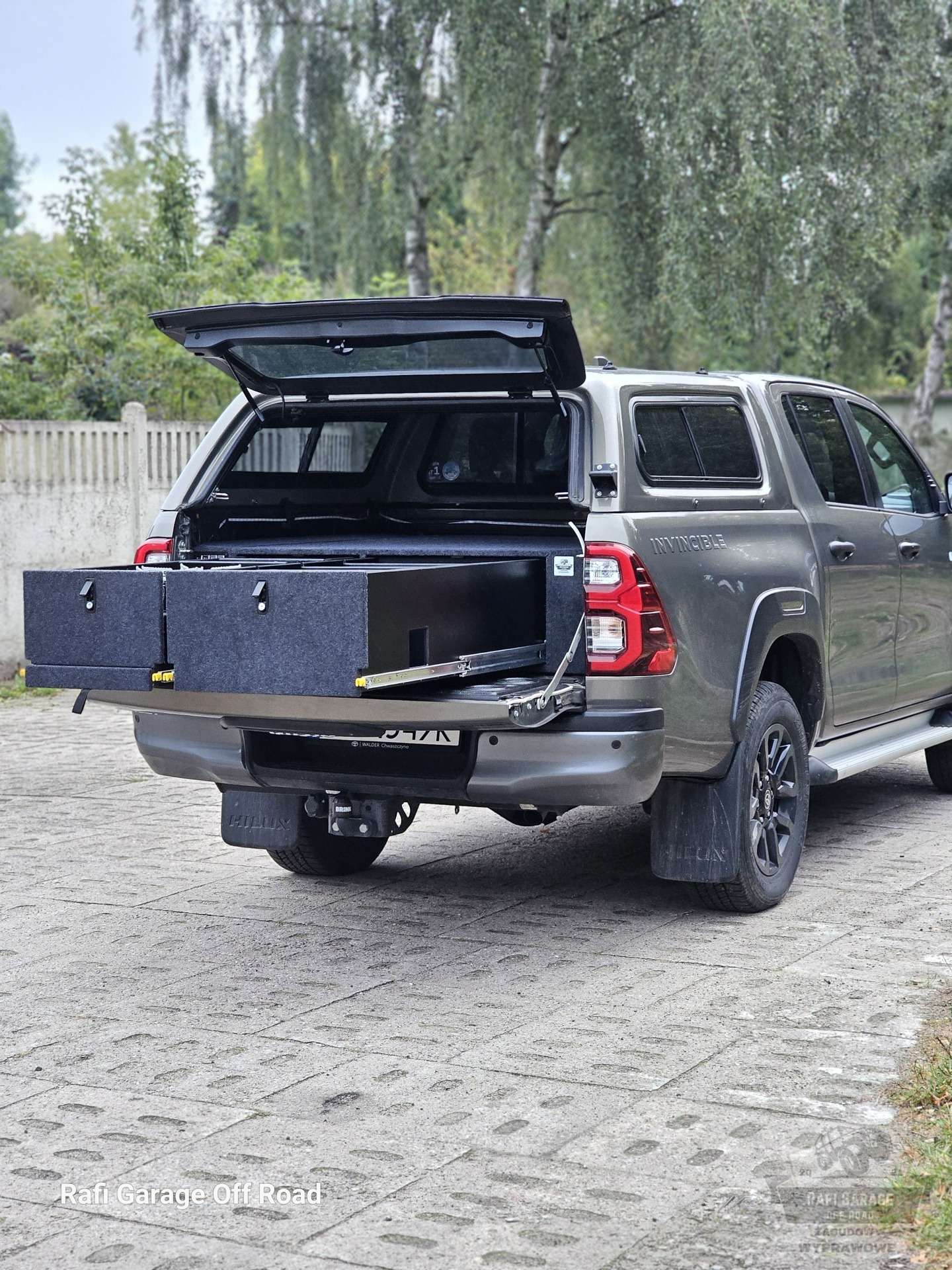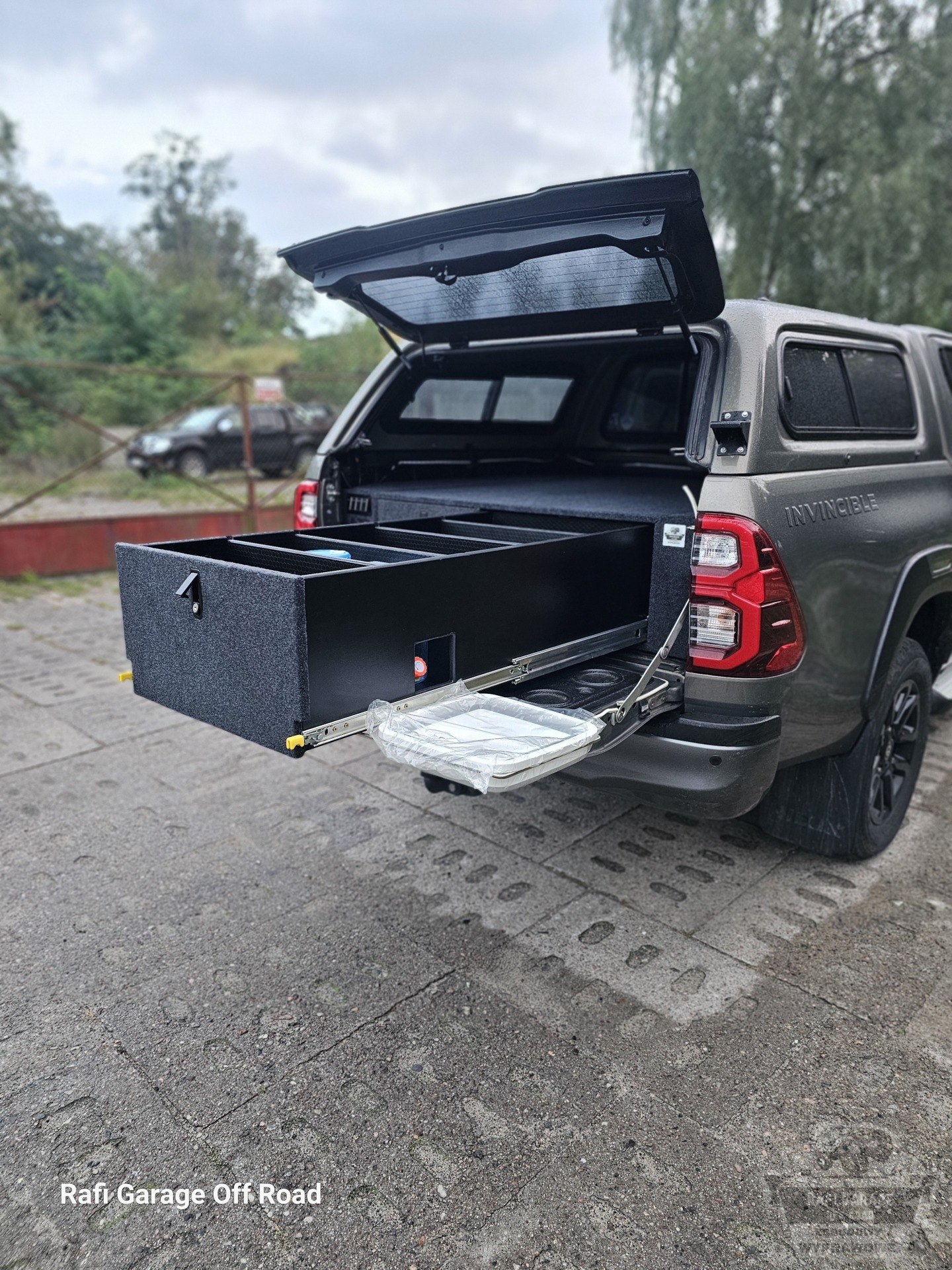 Toyota Hilux – zabudowa paki z modułem kuchennym i szufladami 250 kg